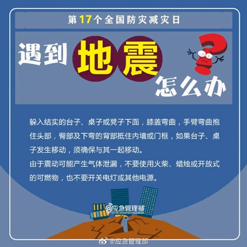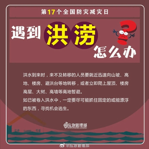 今天是第17個(gè)全國(guó)防災(zāi)減災(zāi)日。地震、臺(tái)風(fēng)、洪澇、山火……災(zāi)害無(wú)情,但正確的逃生避險(xiǎn)方法是我們的有力武器。增強(qiáng)防災(zāi)減災(zāi)意識(shí),為家人,也為自己,這份逃生避險(xiǎn)清單請(qǐng)收好。