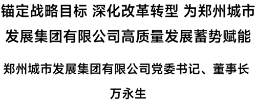 下面,為您推出鄭州城市發(fā)展集團(tuán)有限公司黨委書記、董事長萬永生署名文章《錨定戰(zhàn)略目標(biāo) 深化改革轉(zhuǎn)型 為鄭州城市發(fā)展集團(tuán)有限公司高質(zhì)量發(fā)展蓄勢賦能》——