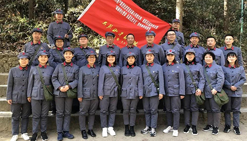 14日,學(xué)員們走上“志仁小道”,在這條曲折山路上,新縣首位共產(chǎn)黨員——王志仁奔走宣傳革命思想、努力開展革命活動(dòng)。在爬山的途中路遇陡坡,旁邊的隊(duì)友立刻伸出援助之手;渴了,沒事我的水給你先喝……身著紅軍服,腳走崎嶇道,學(xué)員們仿佛置身那段熱血?dú)v史中,用自身行動(dòng)弘揚(yáng)革命先輩不畏艱險(xiǎn)、頑強(qiáng)斗爭(zhēng)的光榮傳統(tǒng)。 下午在新縣鄂豫皖蘇區(qū)首府烈士陵園,全體學(xué)員懷著肅穆的心情向革命先烈們敬獻(xiàn)花籃并真誠致禮,在革命烈士事跡陳列廳重溫入黨宣誓。陳列的一個(gè)個(gè)實(shí)物、一幅幅畫卷,將蘇區(qū)可歌可泣的英雄事跡清晰地展現(xiàn)在大家面前,舉起右手,莊嚴(yán)宣誓,英雄們的感人事跡激勵(lì)著我們,在來之不易的和平年代,用實(shí)際行動(dòng)來弘揚(yáng)革命先輩用鮮血和生命凝結(jié)的紅色文化。