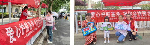 “愛心助考點(diǎn)”服務(wù)站內(nèi),高考專用尺、簽字筆、鉛筆、橡皮等文具整齊擺放,為考生解決不時(shí)之需。志愿者們身著統(tǒng)一服裝,手拿“逢考必勝”“加油,你一定可以”“全力出擊 踏歌前行”等祝福手卡,用微笑表達(dá)對(duì)高考學(xué)子的祝福。
