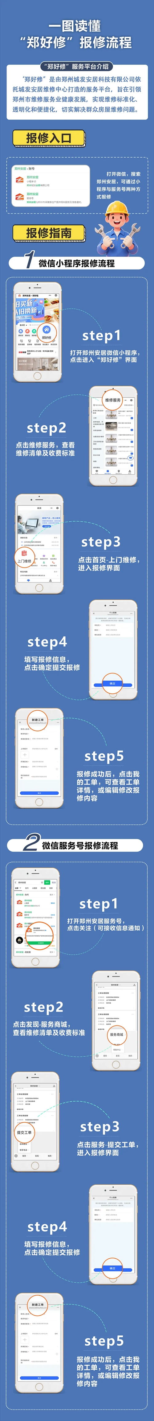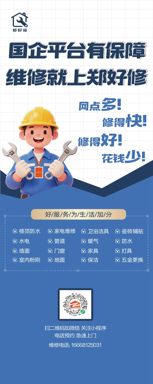 為切實解決群眾房屋維修難題,推動鄭州市維修服務(wù)業(yè)邁向標(biāo)準(zhǔn)化、透明化、便捷化發(fā)展新征程,由鄭州城發(fā)集團下屬子公司鄭州城發(fā)安居科技有限公司精心打造的“鄭好修”服務(wù)平臺,正式上線運營。市民通過鄭州安居微信小程序、鄭州安居微信服務(wù)號,即可輕松實現(xiàn)一鍵報修,享受優(yōu)質(zhì)高效的房屋維修服務(wù)。