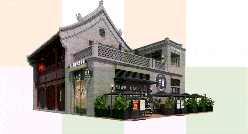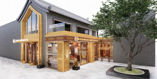 以COMMUNE幻師的門店設(shè)計(jì)為例——從效果圖可以看出,建筑外部以青灰色磚墻復(fù)刻商代建筑肌理,檐角神獸造型融入現(xiàn)代燈光設(shè)計(jì),整體風(fēng)格充滿著古樸與時(shí)尚。店內(nèi)則以暖色調(diào)營造松弛感,酒墻擺滿了來自全球的精釀。每當(dāng)味蕾觸碰到精釀的麥香,窗外同時(shí)飄入來自3600年前夯土的氣息——在這里,顧客喝的不是單純的酒,而是歷史與現(xiàn)代的奇妙敘事。