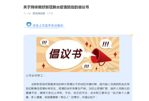 利用疫情防控專題會(huì)議、部門例會(huì)、通知、倡議書等形式加強(qiáng)疫情防控宣傳力度,及時(shí)、準(zhǔn)確地宣傳防治信息,普及防治知識(shí),引導(dǎo)職工科學(xué)參與疫情防控。