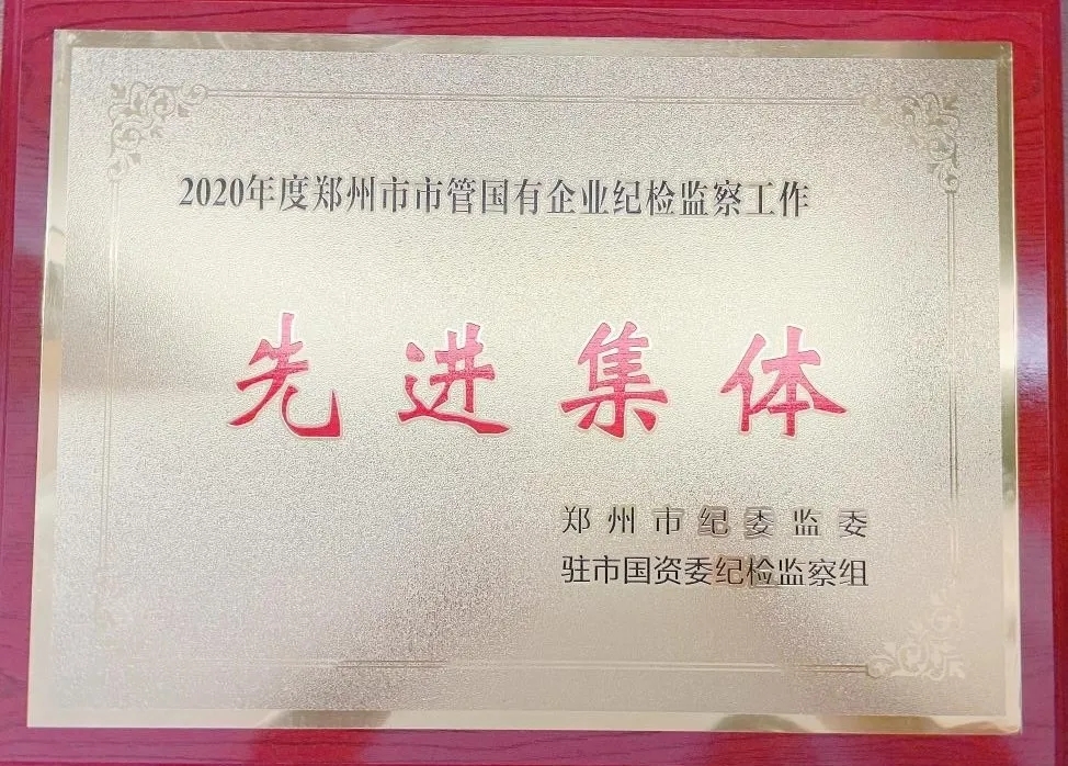 近日,集團(tuán)紀(jì)委被鄭州市紀(jì)委監(jiān)委駐市國(guó)資委紀(jì)檢監(jiān)察組授予“2020年度鄭州市市管國(guó)有企業(yè)紀(jì)檢監(jiān)察工作先進(jìn)集體”榮譽(yù)稱號(hào)。