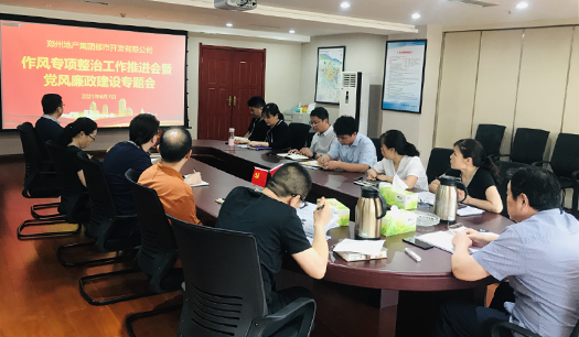 7月19日,鄭地新城公司組織召開“整風(fēng)肅紀(jì),創(chuàng)優(yōu)環(huán)境”作風(fēng)整頓專題會(huì),公司全體中層以上領(lǐng)導(dǎo)干部參加,會(huì)議由公司紀(jì)檢委員、副總經(jīng)理劉陸峰主持。會(huì)議傳達(dá)了集團(tuán)紀(jì)委在7月16日召開的“對(duì)標(biāo)看齊轉(zhuǎn)作風(fēng)、爭(zhēng)先創(chuàng)優(yōu)提效能”座談會(huì)相關(guān)要求,并集中學(xué)習(xí)《廉政學(xué)習(xí)??贰?huì)議要求公司上下要高度重視作風(fēng)建設(shè),早打“預(yù)防針”、常敲“警世鐘”,深入開展問題“掃除式”清零和自查自糾工作,馳而不息糾正“四風(fēng)”,確保公司作風(fēng)建設(shè)工作取得實(shí)效。