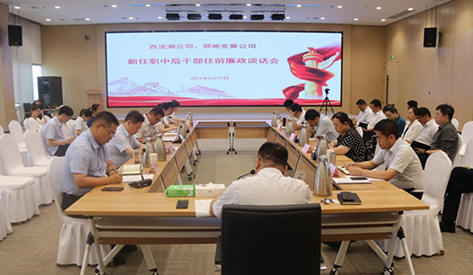 6月19日下午,西流湖公司、鄭地發(fā)展公司召開新任中層干部任前廉政談話會(huì)。公司領(lǐng)導(dǎo)班子成員、中層正副職人員及新任職中層干部人員共計(jì)二十余人參加,會(huì)議由公司黨支部書記、董事長、總經(jīng)理吉獻(xiàn)亮主持。會(huì)議要求新任中層干部要認(rèn)清定位、做好表率,要對(duì)下負(fù)責(zé)、嚴(yán)格管理,以強(qiáng)烈的事業(yè)心和主人翁姿態(tài),主動(dòng)扛大梁、挑重?fù)?dān)、負(fù)重責(zé)、做貢獻(xiàn);要敢于擔(dān)當(dāng)作為,勇于攻堅(jiān)克難,要以踏石留印、抓鐵有痕的勁頭理清思路、突出重點(diǎn)、轉(zhuǎn)變作風(fēng)、創(chuàng)新機(jī)制,以主動(dòng)擔(dān)當(dāng)、奮發(fā)有為的姿態(tài)扛起助力城市建設(shè)發(fā)展的大旗,為鄭州國家中心城市建設(shè)增光添彩。