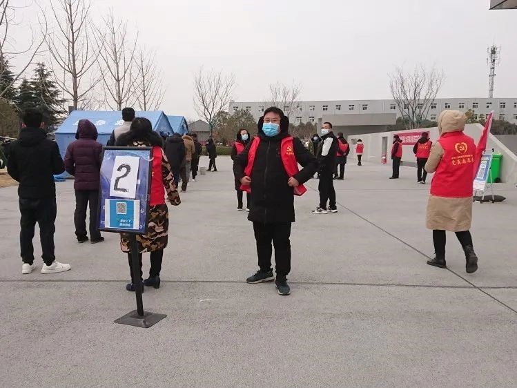 初心如磐,為民而戰(zhàn)。為有效提高檢測(cè)效率,制定高效的檢測(cè)流程,為群眾提供優(yōu)質(zhì)滿意的服務(wù)。在鄭州金岱科創(chuàng)城商務(wù)服務(wù)中心現(xiàn)場(chǎng),志愿者們?cè)诮疳饭芪瘯?huì)的支持下成立了臨時(shí)黨支部及黨員先鋒突擊隊(duì),由支部書記和突擊隊(duì)長(zhǎng)統(tǒng)籌指揮現(xiàn)場(chǎng)檢測(cè)工作,所有志愿者及醫(yī)護(hù)人員擔(dān)任隊(duì)員聽從指揮、統(tǒng)一行動(dòng)、互相配合。大家分工有序各司其職,上下團(tuán)結(jié)一心,相互鼓舞,將各個(gè)環(huán)節(jié)工作做到無(wú)縫銜接。冬日的嚴(yán)寒絲毫沒有擋住志愿者服務(wù)的熱情,大家以實(shí)際行動(dòng)踐行“我為群眾辦實(shí)事”要求,扛起服務(wù)當(dāng)前疫情防控大局的責(zé)任擔(dān)當(dāng)。