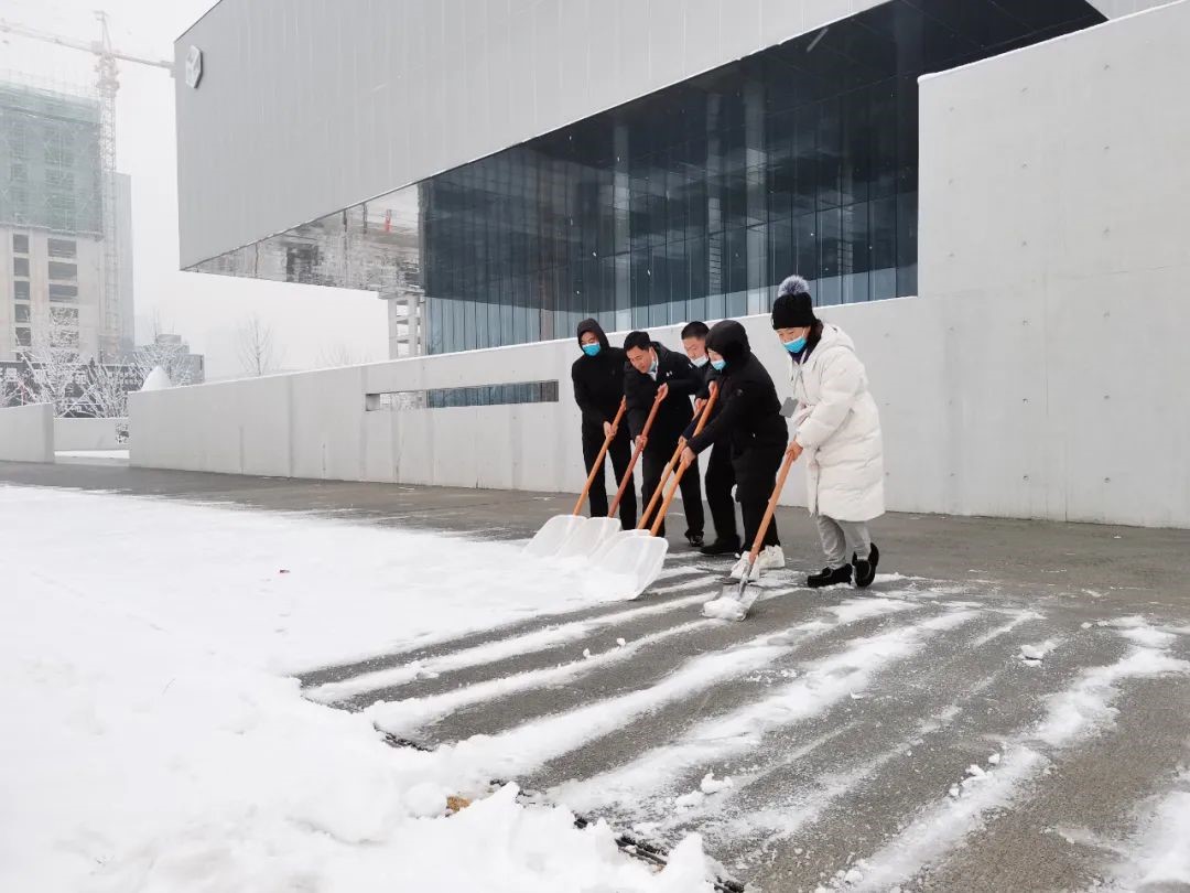全力以赴,分秒必爭(zhēng)。4日下午突如其來的降雪,給第二天的檢測(cè)工作帶來了極大困難。面對(duì)艱巨的任務(wù),為切實(shí)做好全員核酸檢測(cè)準(zhǔn)備工作,保障參檢群眾生命財(cái)產(chǎn)安全。鄭地發(fā)展公司作為國(guó)企,危急關(guān)頭彰顯國(guó)企擔(dān)當(dāng),第一時(shí)間作出動(dòng)員號(hào)召,由黨員同志帶頭,迅速組建了一支30余人的志愿服務(wù)隊(duì),連夜開始了場(chǎng)地清理布置工作,調(diào)配防疫物資、準(zhǔn)備消毒液、架設(shè)引導(dǎo)牌、拉設(shè)警戒線、張貼掃碼紙、擺放檢測(cè)臺(tái),對(duì)商務(wù)服務(wù)中心進(jìn)行全面消殺,同時(shí)組織新加入的志愿者開展模擬演練,幫助大家快速熟悉服務(wù)工作,保證各個(gè)環(huán)節(jié)有條不紊。5日清晨,志愿者們?cè)缭鐏淼缴虅?wù)服務(wù)中心現(xiàn)場(chǎng)清理積雪,僅僅半個(gè)小時(shí),園區(qū)便露出了干凈整潔的路面,為迎接檢測(cè)做好了充分準(zhǔn)備。