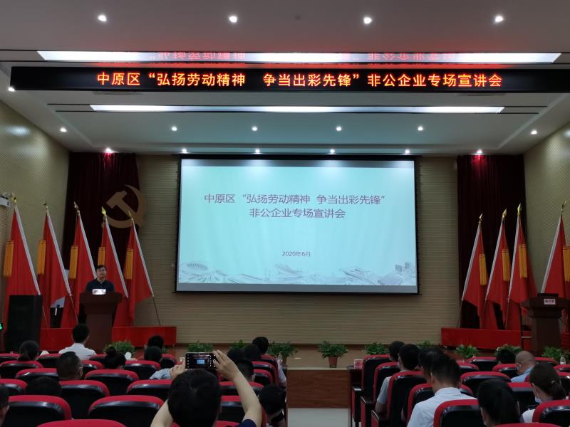為充分發(fā)揮中原新區(qū)聯(lián)合黨委基層黨校在黨的理論教育上的主陣地作用和在黨性教育上的大熔爐作用,在黨校中弘揚習(xí)近平總書記給圓方集團(tuán)職工的重要回信精神,真正使聯(lián)合黨委基層黨校成為黨員干部思想政治教育的紅色殿堂,6月5日和9日,中原區(qū)“弘揚勞動精神 爭當(dāng)出彩先鋒”企業(yè)、班組專場及非公企業(yè)專場宣講會在中原新區(qū)聯(lián)合黨委基層黨校舉行,中原區(qū)委組織部組織科科長蔚光勛、西流湖公司副總經(jīng)理昌磊出席活動,共有來自中原區(qū)各街道辦事處、各企業(yè)的150余名黨員職工聆聽了宣講。
